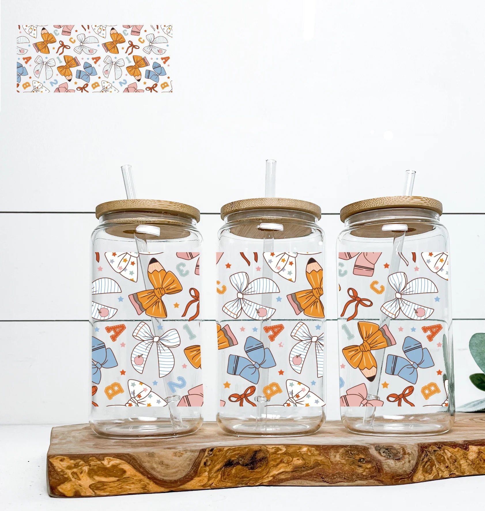 Glass cup & straw, bamboo lid. Hand wash only. Do not scrub or soak.
